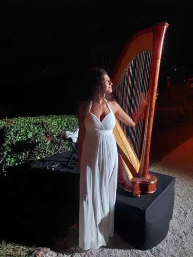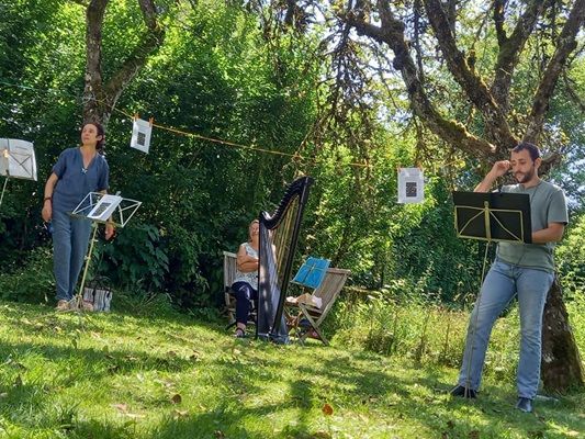 En arrière-plan les musiciens Etienne, Adrien et Ali, avec Rénia AOUADENE.