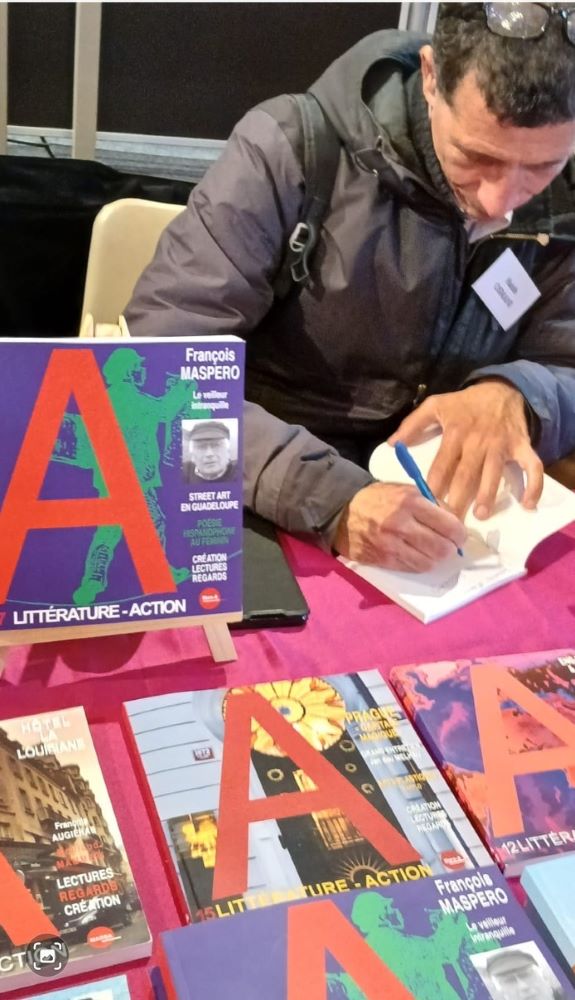 - Du 18 au 20 juin, Mars-A Publications et la revue A ont tenu un grand stand bien fourni à LIRE A LIMOGES (Photos 1, 2 et 3), avec la présence de 5 auteurs en signature : Hacina HOCINE pour "Au fil du temps", Yamina MEZIANI pour "Le silence des mères", Théo PLANTEFOL pour "Péremtions", Patrick KHAYAT pour "Utopia. Commune libanaise", et Farida OUCHANI pour son roman "J'ai comme du coton dans la tête". Cette dernière (photo 4), comédienne connue pour les quelque 60 films (cinéma et TV) dans lesquels elle a joué, a vu venir à elle un public ravi de rencontrer celle qui tient le rôle de Mima dans le film "Sur la route de papa" tout juste sorti en salles : les selfies se sont enchaînés...