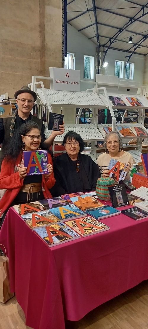 Le dimanche : Karima MANAA pour "Rose, Bintou, Saadia et les autres", Habib OSMANI, et Martine MONTEAU, active contributrice de la revue A littérature-action. Un grand merci à Lila AÏSSAOUI, notre fidèle collaboratrice, qui nous a accompagnés pour l'intendance pendant ces deux jours.