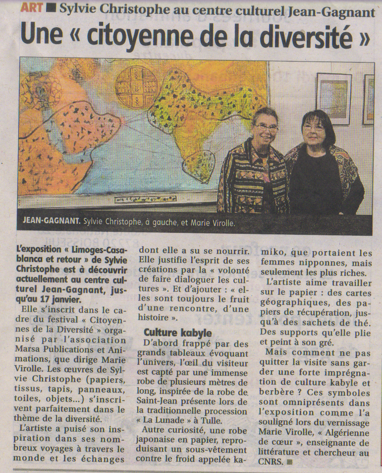 Dans Le Populaire du Centre du 21 mars, un article sur notre participation au Festival "Unité dans la diversité" (13 et 14 mars à Limoges) organisé par l'association "Artistes".